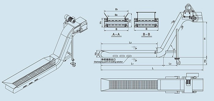 (1) 电机功率根据有效排屑宽度B2、水平度L1 . 提升高度H确定