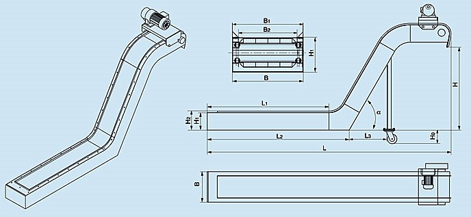● CBP型系列磁性板式排屑机结构紧凑.运转平稳.噪声低.最适宜输送的是吸磁的颗粒状块状切屑以及长度小于15Omm 的断屑。该机器的主要工作元件磁场强大,使其具备良好的排屑性能。此排屑机属于定量排屑.即每组磁性材料能够吸附吸屑的最大量是固定的。即使工作面上堆积了更多的切屑它也是按固定的排屑量进行输送。另外,该排屑机的运动部件全部封闭在壳体内部工作面板上有非切屑异物时,也不会导致机器卡滞、过载。