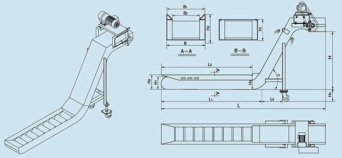 (1)电机功率根据有效排屑宽度B2、水平度L1、提升高度H确定