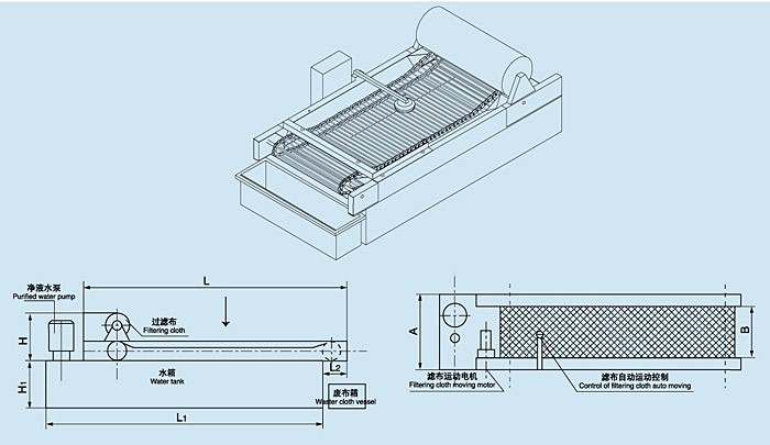 注:水箱外形尺寸用户根据使用现场面积确定,如果对冷却液温度有要求,可以在水箱上加上恒温装置。 该过滤机为全自动动作,不需人工操作。