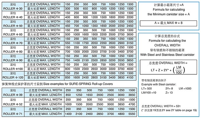 推荐的尺寸:这些表格根据总宽度给出了最大的板的长度。在最大速度40米/分钟的条件下,这些值都是保证值。对更高的速度以及那些没有包括在这些表中的值,请与我们的工程设计部门联系。所有带或不带箱罩的伸缩式保护罩都可以按订单要求制作。